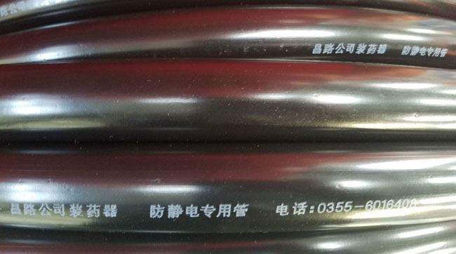 裝藥器專用半導(dǎo)體防靜電輸藥膠管,是裝藥器在輸藥過程中唯一專用管材,具有導(dǎo)電、防火花、耐壓、耐酸、防腐、耐磨損等作用,是裝藥器在輸藥過程中確保人身安全,杜絕重大事故隱患的特殊管材。 防靜電專用管 防靜電輸藥管生產(chǎn)過程 防靜電輸藥管生產(chǎn)線